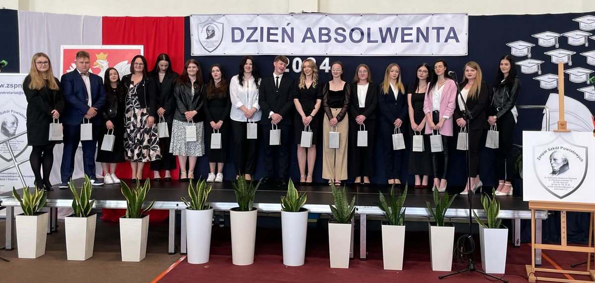 25 kwietnia 2024 roku w Zespole Szkół Powiatowych im. Stanisława Staszica w Opocznie odbył się Dzień Absolwenta. Uroczystość obecnością swą uświetnili: pan Rafał Skoczylas – Dyrektor Biura Poselskiego Posła na Sejm RP Roberta Telusa, pani doktor Grażyna Wójcik – Przewodnicząca Komisji Rodziny, Edukacji i Kultury Powiatu Opoczyńskiego, pani Urszula Kozera – Przewodnicząca Rady Rodziców oraz przedstawiciele firm partnerskich, które współpracują z naszą szkołą w zakresie kształcenia zawodowego: pani Justyna Wijata – Dyrektor Kadr i Płac „Ceramiki Paradyż”, pan Tomasz Ożóg – Dyrektor Zakładu Firmy „Cersanit” S.A. – Zakład Produkcyjny w Opocznie, pan Zbigniew Jastrzębski – Dyrektor PGE Energetyka Kolejowa S.A. Zakład Mazowiecki, pan Tomasz Kisała – Zastępca Dyrektora „POLREGIO” S.A. Zakład Napraw Taboru w Kruszewcu, pani Anna Sieczkarek – Usługi Kateringowe i Gastronomiczne „Anna”.