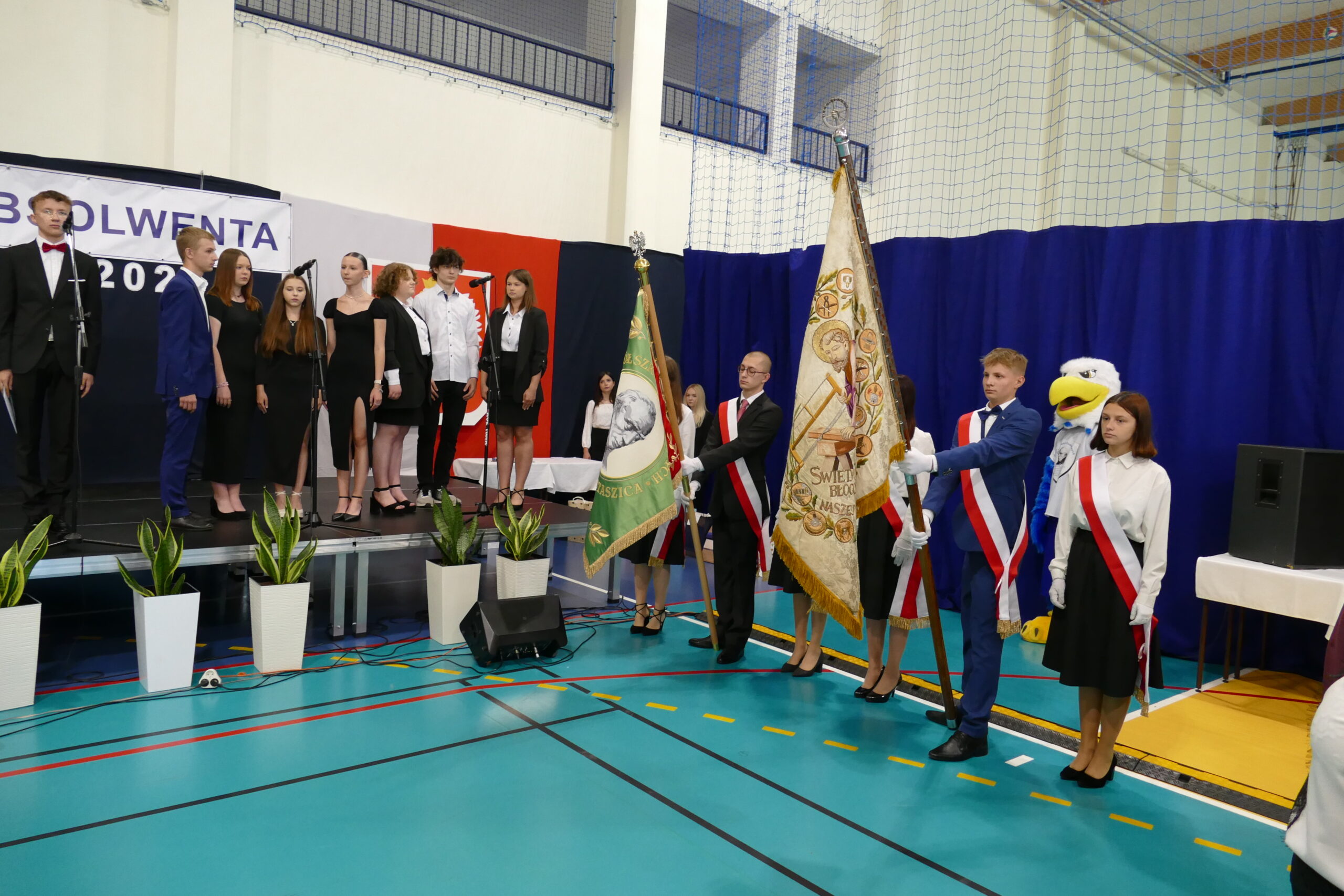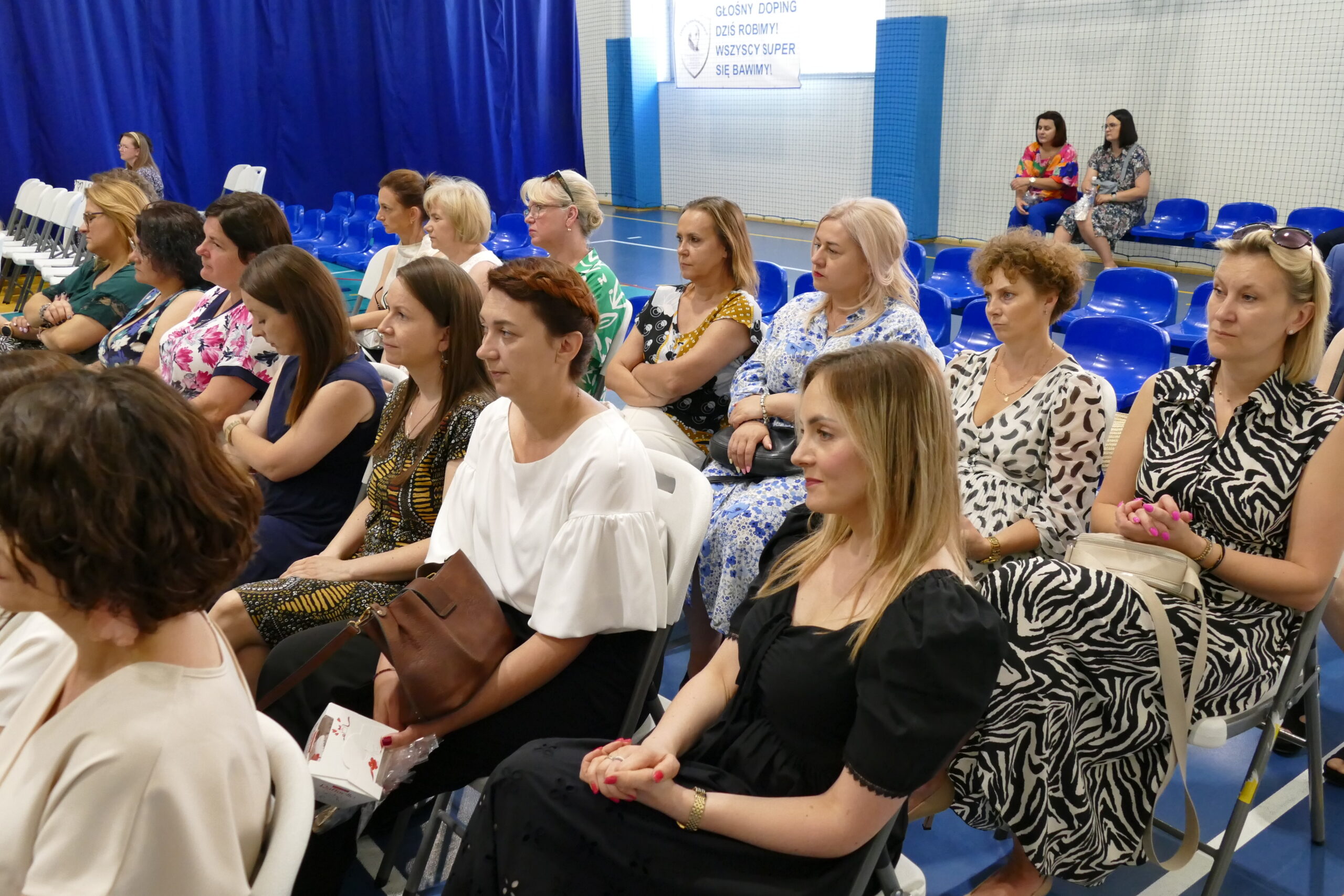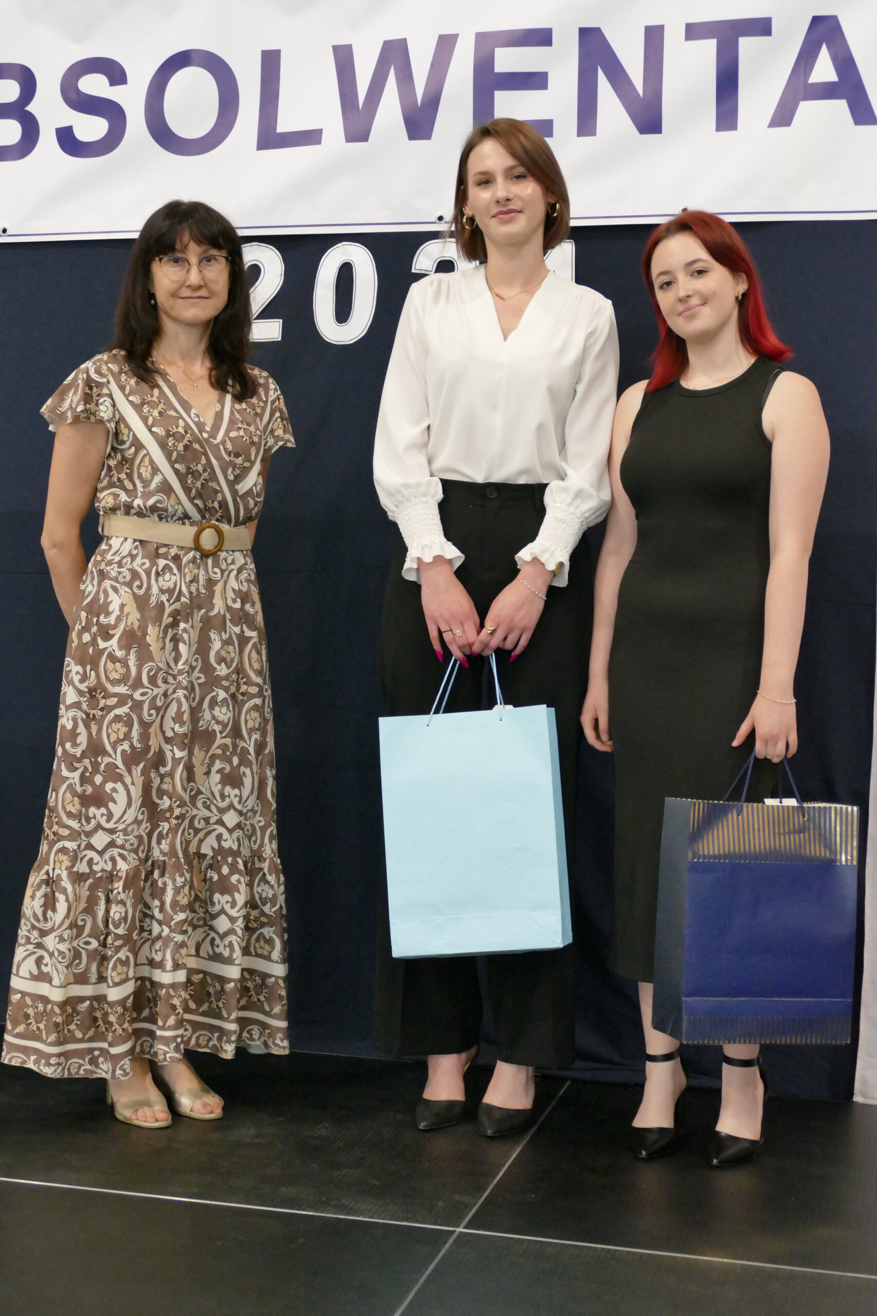 W tym szczególnym czasie pożegnania absolwenci słowa podziękowania skierowali również w stronę swoich wychowawczyń – pani Katarzyny Łukowiak i pani Tatiany Kosylak oraz nauczycieli uczących. W imieniu uczniów klas kończących głos zabrali Natalia Deka oraz Igor Piekarski. Wychowawcom zostały wręczone bukiety kwiatów a wszyscy nauczyciele otrzymali słodkie upominki.