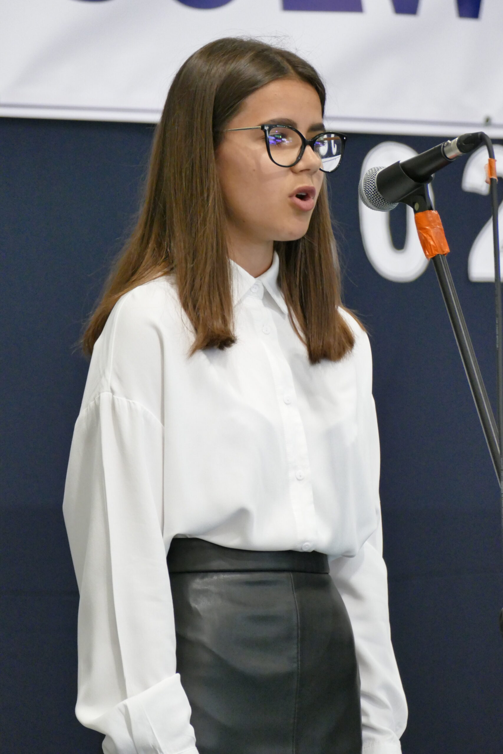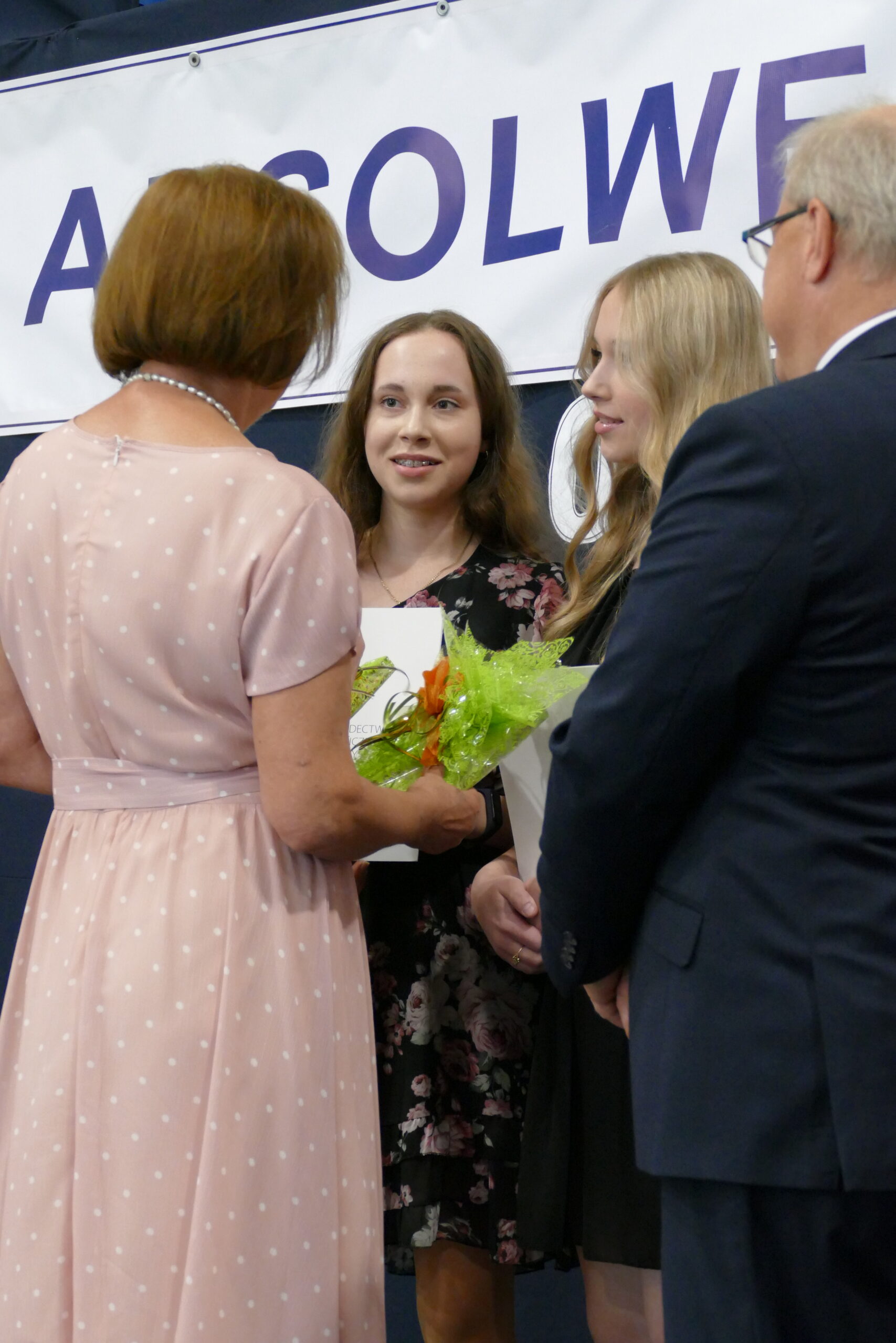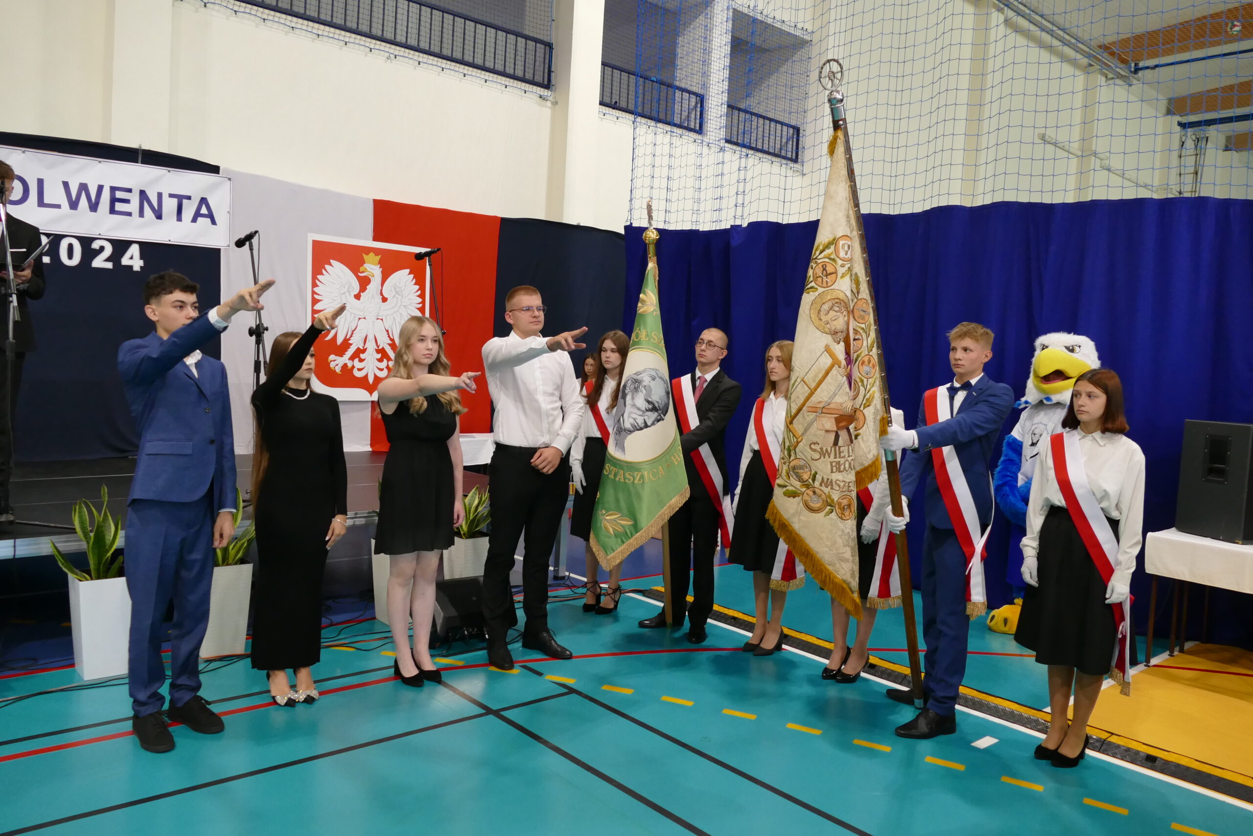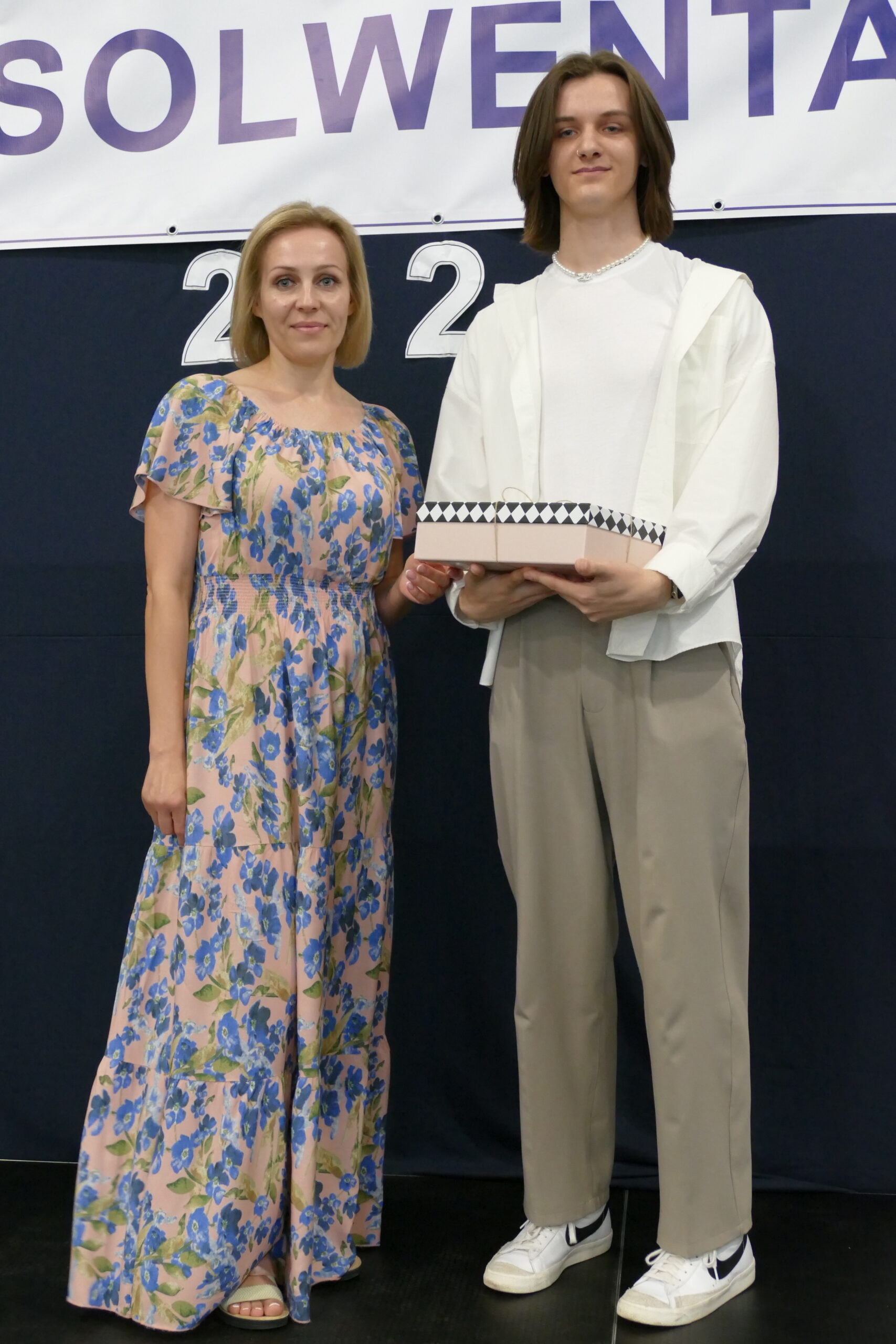W tym szczególnym czasie pożegnania absolwenci słowa podziękowania skierowali również w stronę swoich wychowawczyń – pani Katarzyny Łukowiak i pani Tatiany Kosylak oraz nauczycieli uczących. W imieniu uczniów klas kończących głos zabrali Natalia Deka oraz Igor Piekarski. Wychowawcom zostały wręczone bukiety kwiatów a wszyscy nauczyciele otrzymali słodkie upominki.
