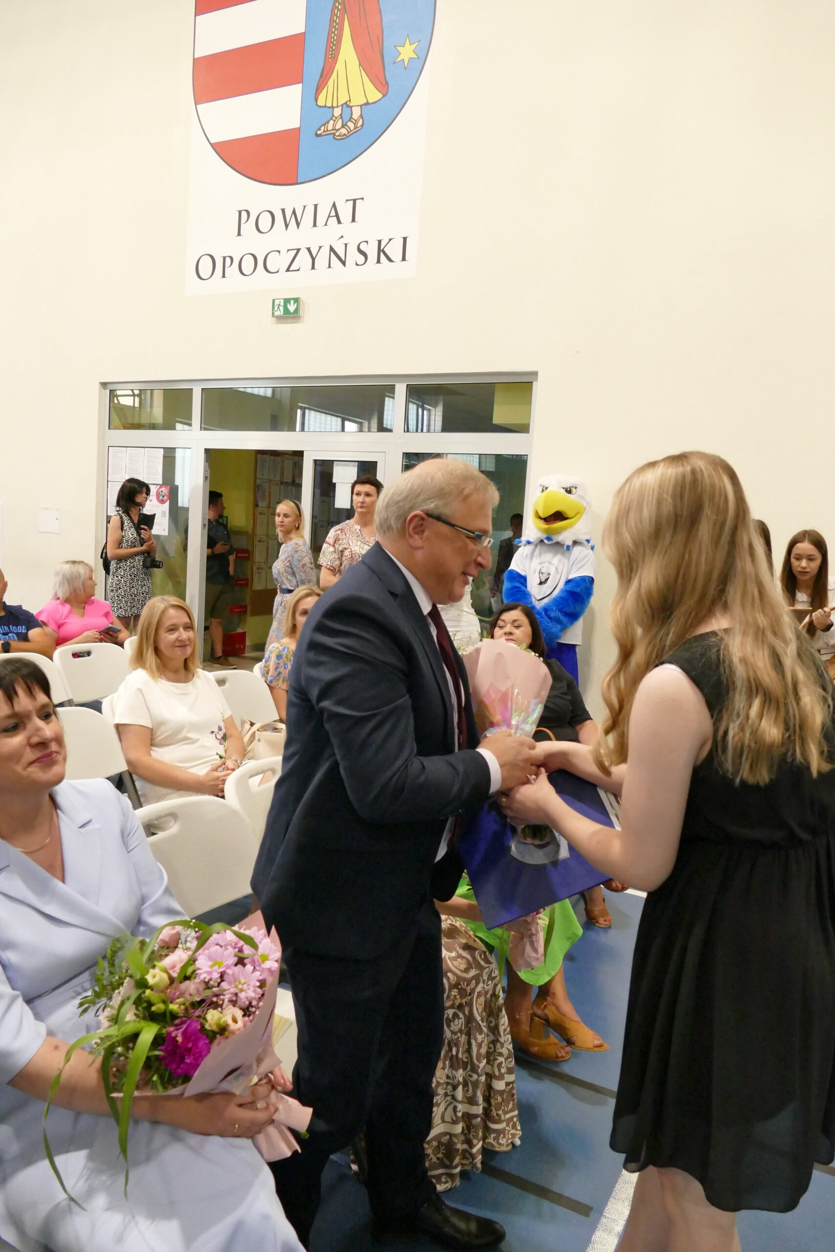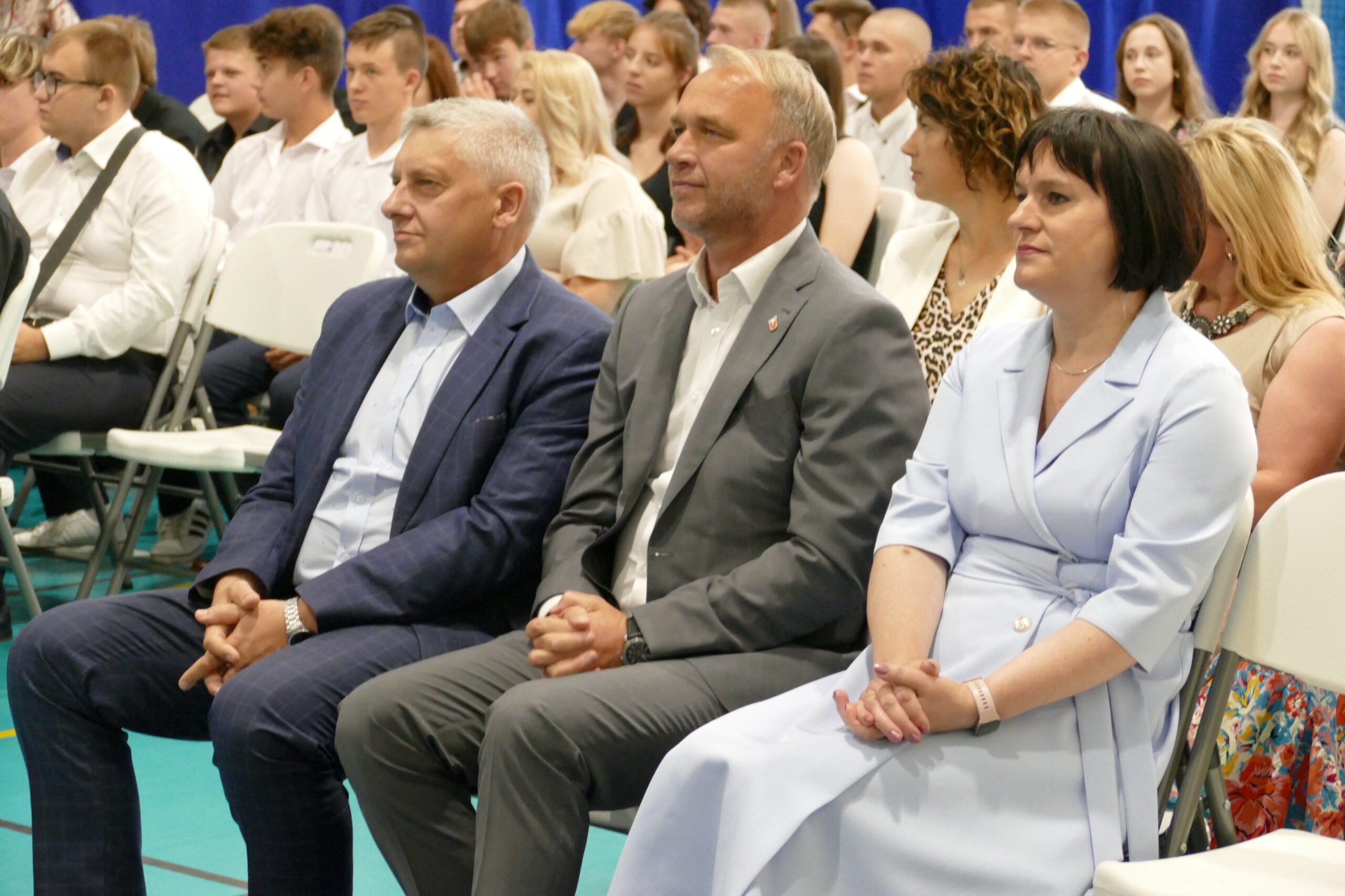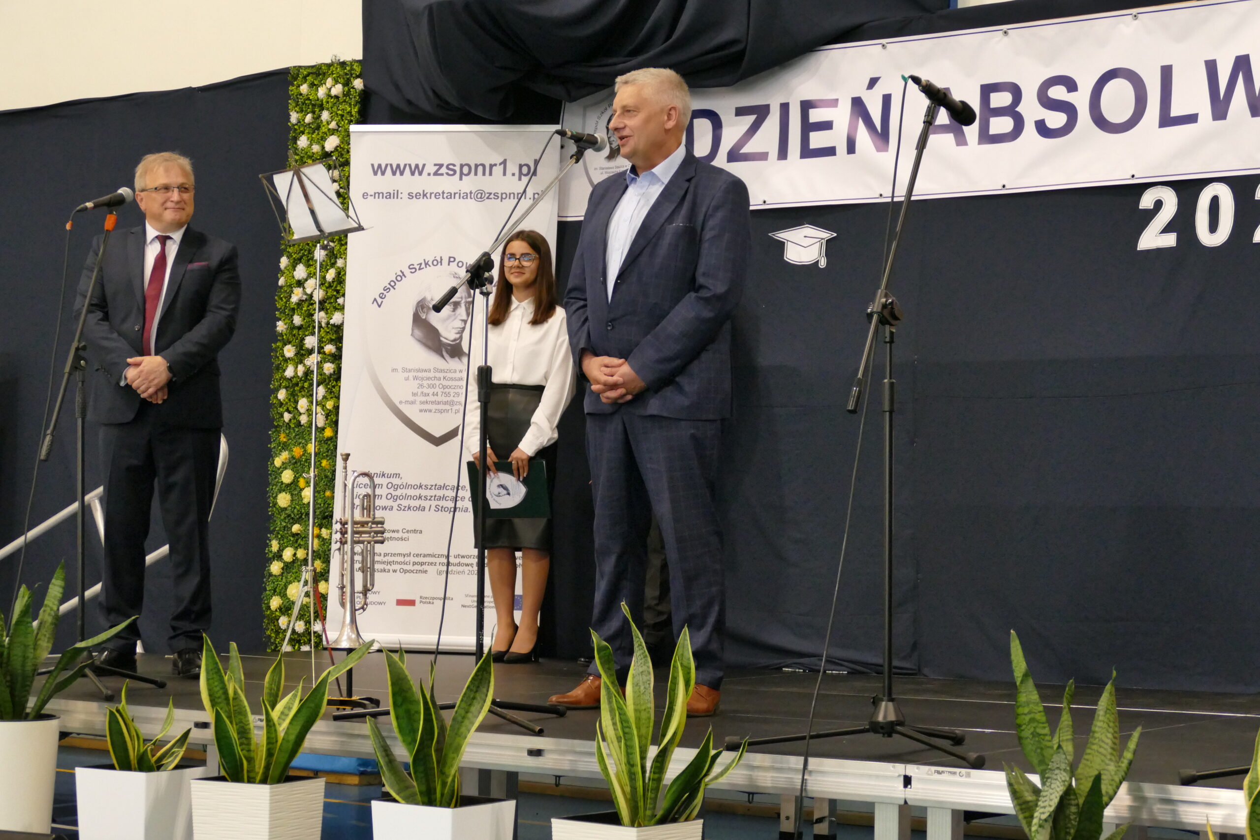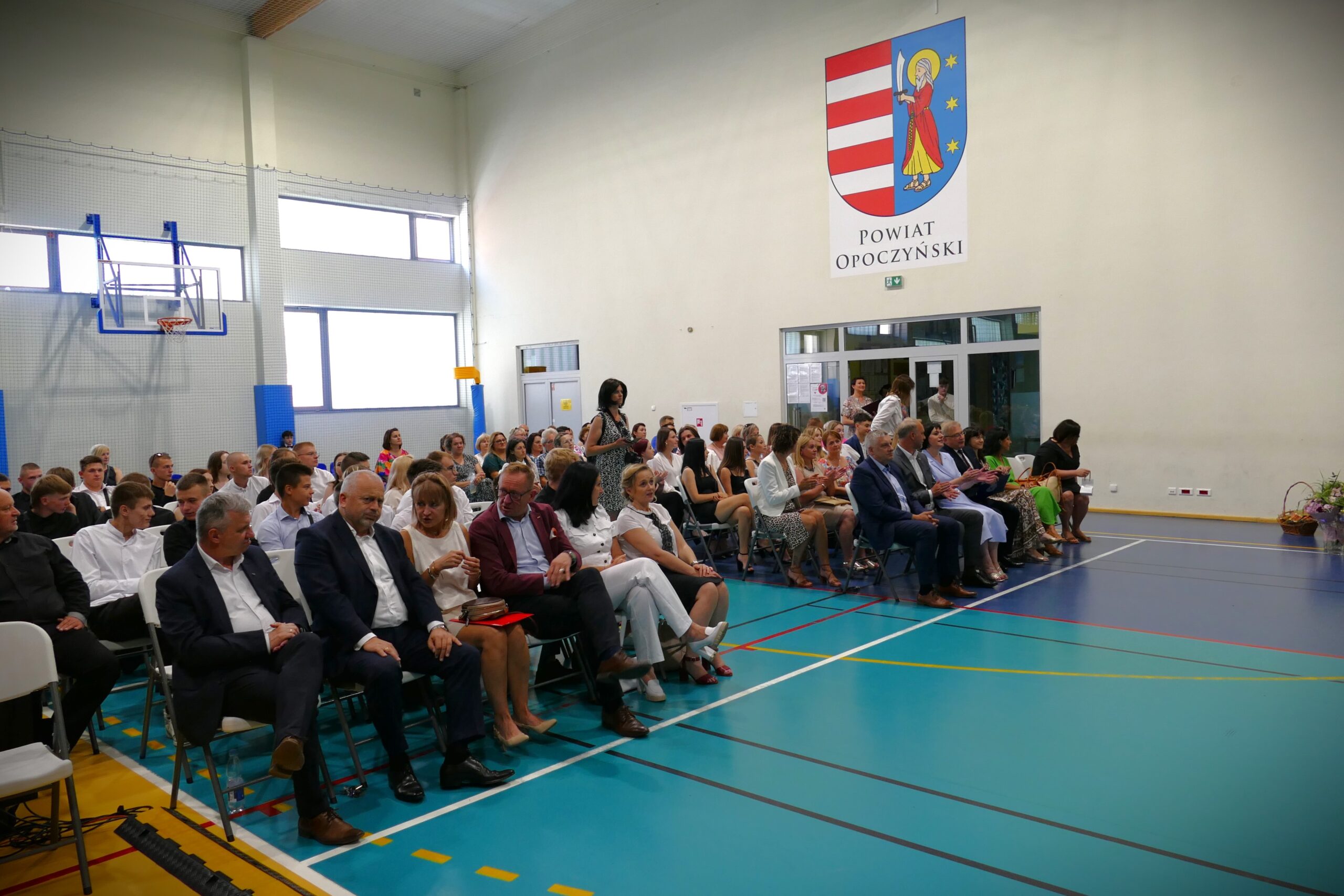 Dzień 21 czerwca 2024 roku to szczególny dzień dla absolwentów dwóch klas Branżowej Szkoły I Stopnia w Zespole Szkół Powiatowych im. Stanisława Staszica w Opocznie. Byli wśród nich fryzjerzy, elektrycy, monterzy instalacji sanitarnych, murarze – tynkarze, cukiernicy, kucharze, sprzedawcy i stolarze. W uroczystości uczestniczyli: Dyrekcja, Grono Pedagogiczne, pracownicy obsługi i administracji, ale przede wszystkim Rodzice wyróżnionych absolwentów oraz dostojni goście: pan Robert Telus – Poseł na Sejm Rzeczypospolitej Polskiej, pani Maria Barbara Chomicz – Wicestarosta Powiatu Opoczyńskiego, pan Jan Zięba – Wiceburmistrz, pani Małgorzata Groblicka – Dyrektor Wydziału Oświaty i Funduszy Unijnych Starostwa Powiatowego w Opocznie, pani Grażyna Żelazowska – HR Ekspert firmy CERSANIT S.A., pani Anida Wójcik – Kierownik Cechu Rzemiosł Różnych w Opocznie, pani Wiesława Wojciechowska – właścicielka firmy WOY, pan Bogusław Grałek z firmy MAT – INSTAL, pani Iwona Łazowska – właścicielka salonu fryzjerskiego „Elena”, Wioletta Gołąb-Kobylarz – właścicielka Studia „Venus” oraz pani Agnieszka Cieluch – przedstawicielka restauracji „Savana”.