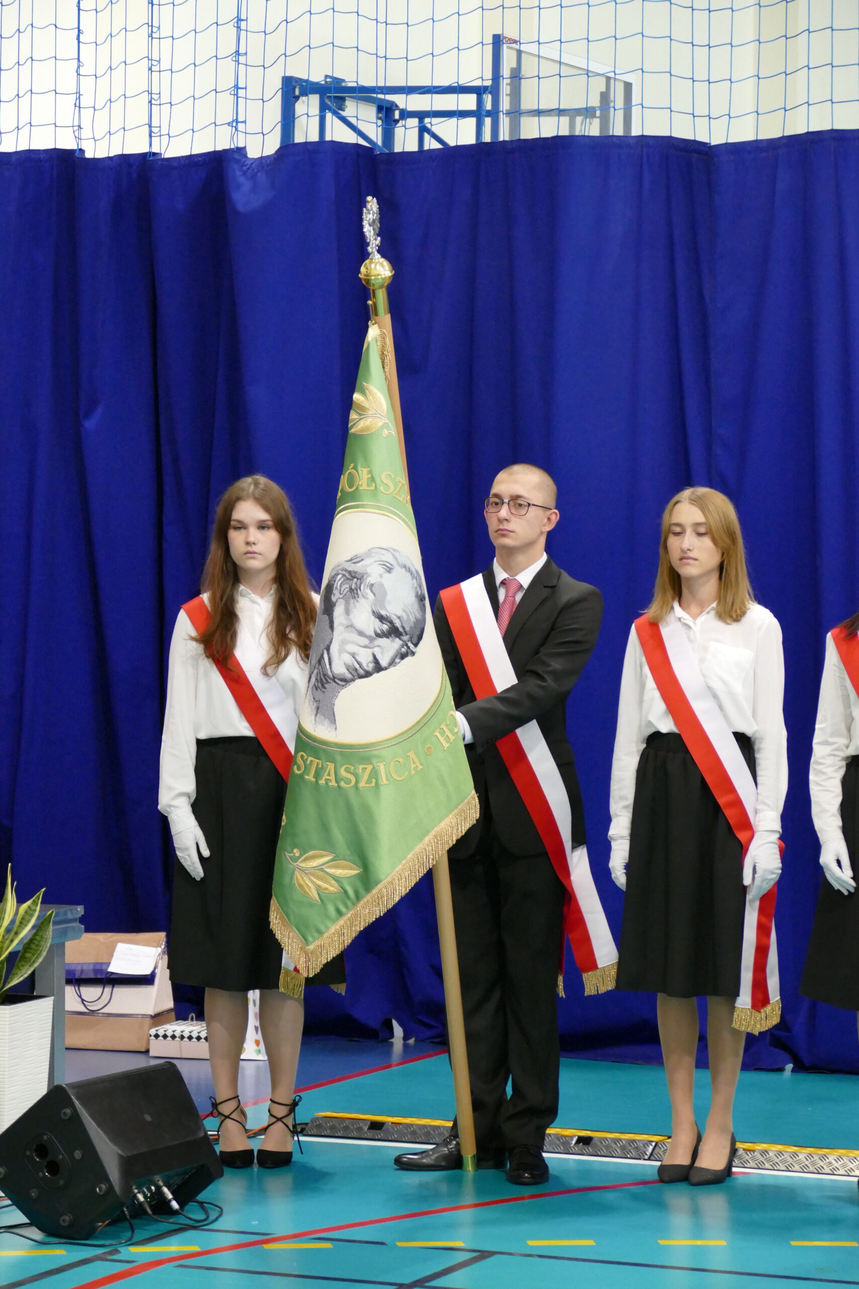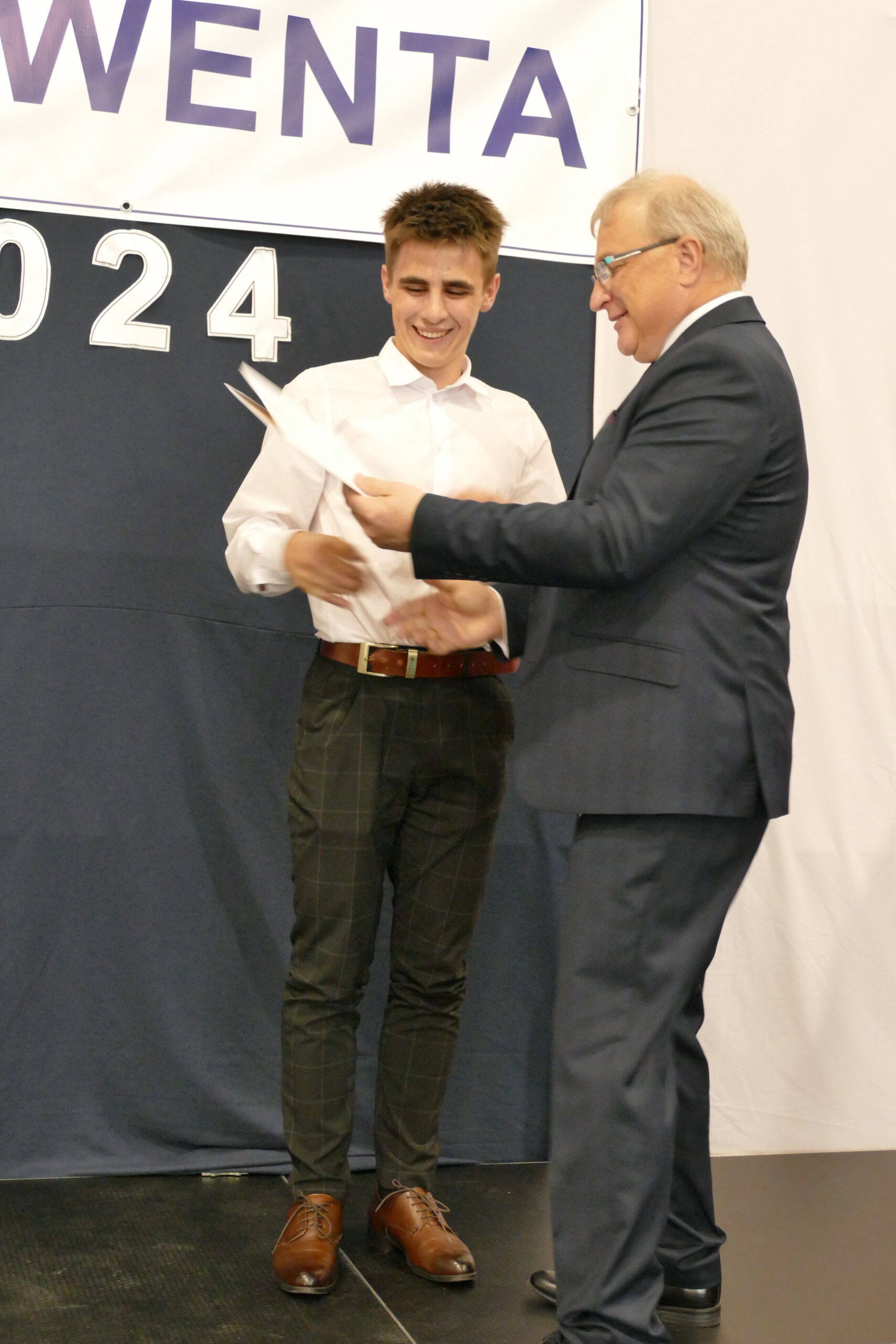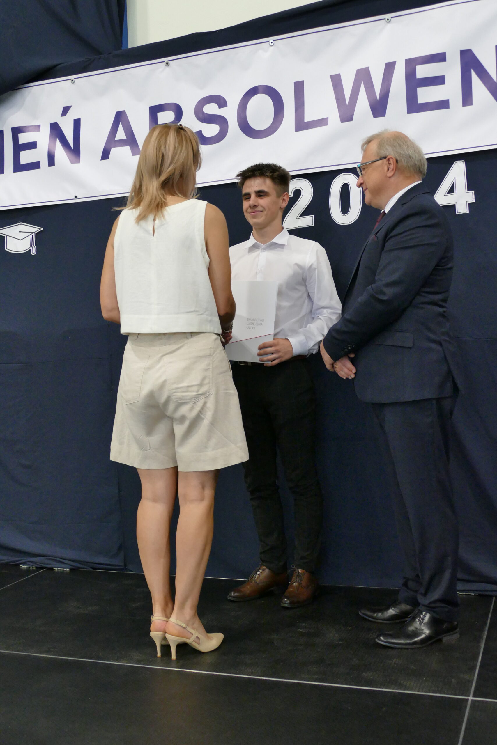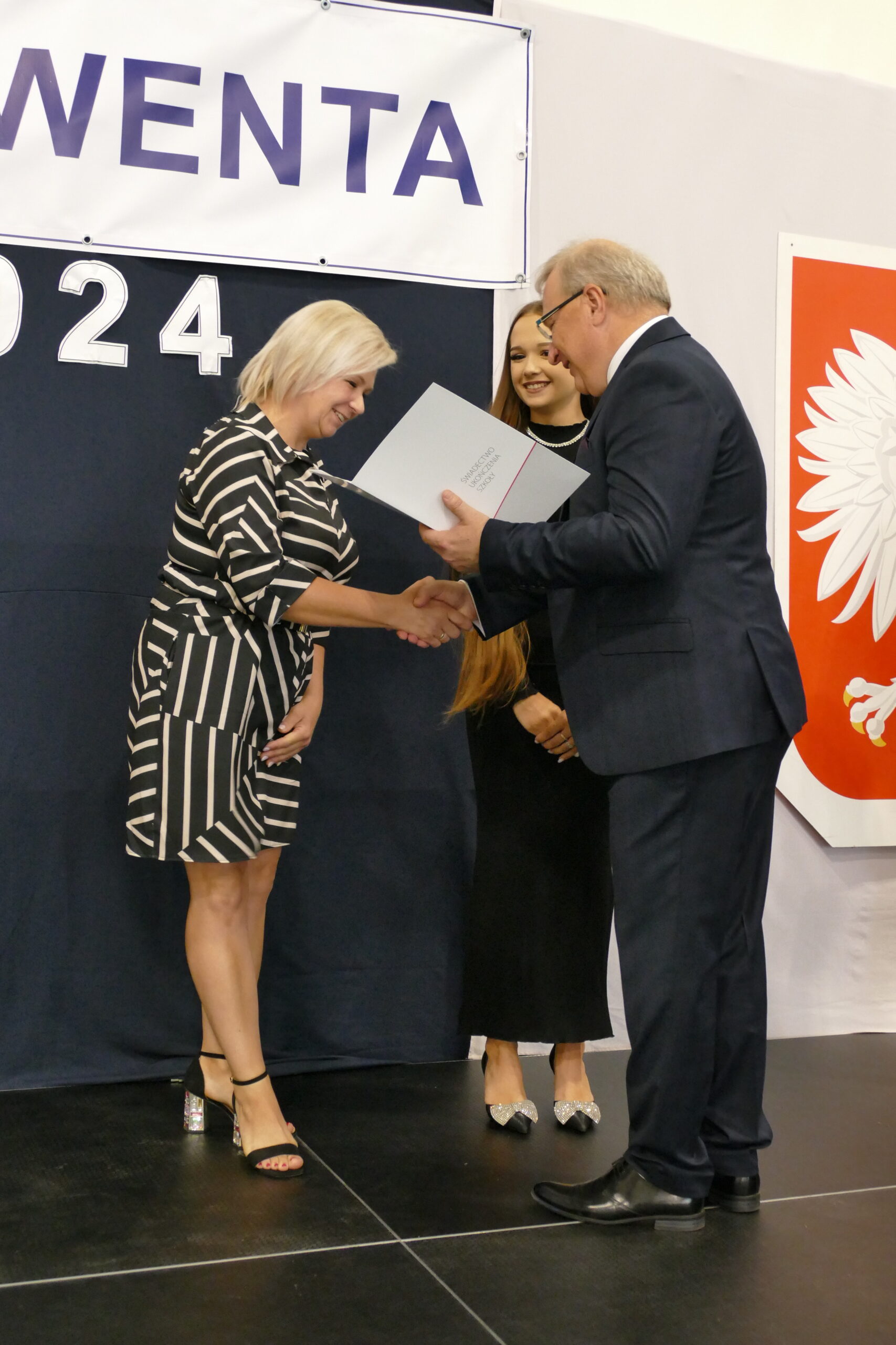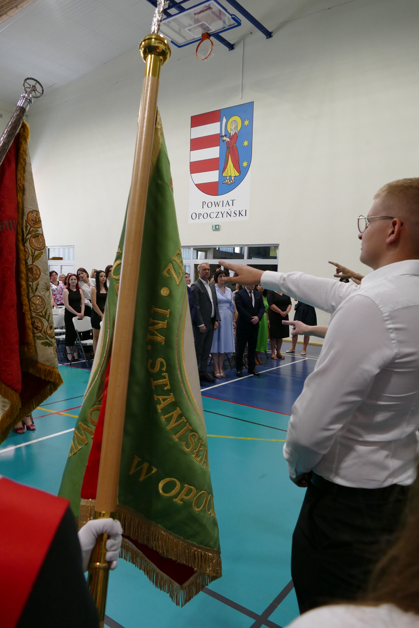 Dzień 21 czerwca 2024 roku to szczególny dzień dla absolwentów dwóch klas Branżowej Szkoły I Stopnia w Zespole Szkół Powiatowych im. Stanisława Staszica w Opocznie. Byli wśród nich fryzjerzy, elektrycy, monterzy instalacji sanitarnych, murarze – tynkarze, cukiernicy, kucharze, sprzedawcy i stolarze. W uroczystości uczestniczyli: Dyrekcja, Grono Pedagogiczne, pracownicy obsługi i administracji, ale przede wszystkim Rodzice wyróżnionych absolwentów oraz dostojni goście: pan Robert Telus – Poseł na Sejm Rzeczypospolitej Polskiej, pani Maria Barbara Chomicz – Wicestarosta Powiatu Opoczyńskiego, pan Jan Zięba – Wiceburmistrz, pani Małgorzata Groblicka – Dyrektor Wydziału Oświaty i Funduszy Unijnych Starostwa Powiatowego w Opocznie, pani Grażyna Żelazowska – HR Ekspert firmy CERSANIT S.A., pani Anida Wójcik – Kierownik Cechu Rzemiosł Różnych w Opocznie, pani Wiesława Wojciechowska – właścicielka firmy WOY, pan Bogusław Grałek z firmy MAT – INSTAL, pani Iwona Łazowska – właścicielka salonu fryzjerskiego „Elena”, Wioletta Gołąb-Kobylarz – właścicielka Studia „Venus” oraz pani Agnieszka Cieluch – przedstawicielka restauracji „Savana”.