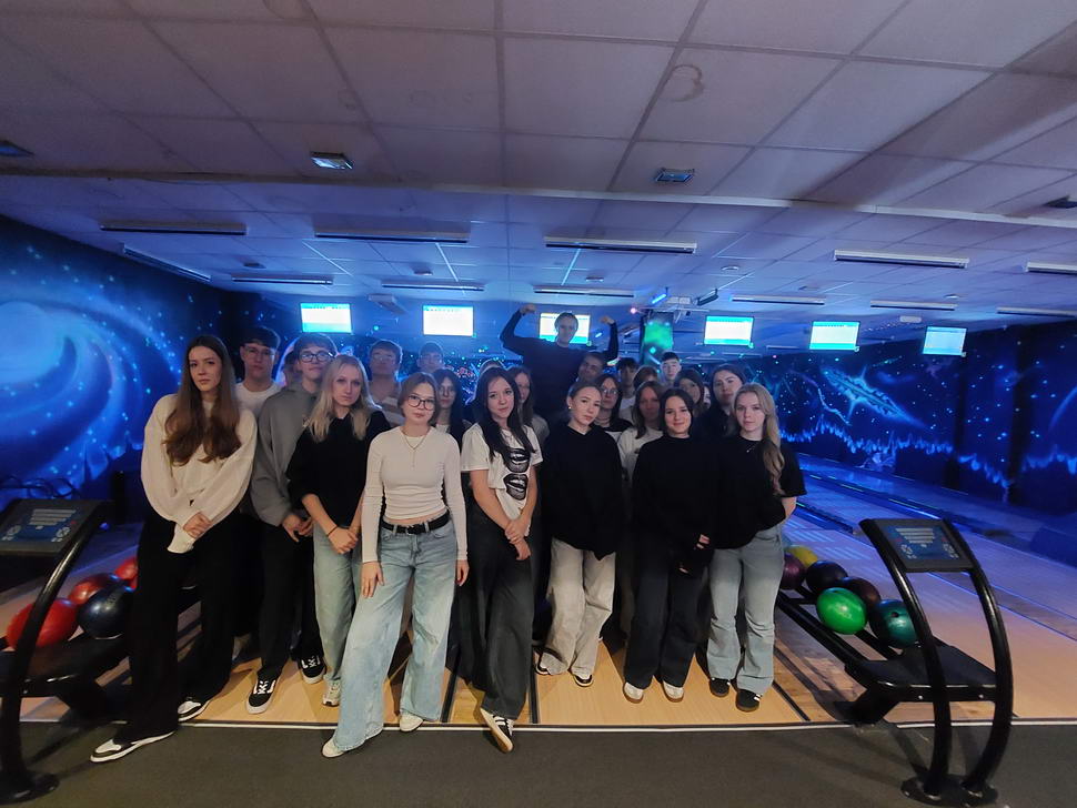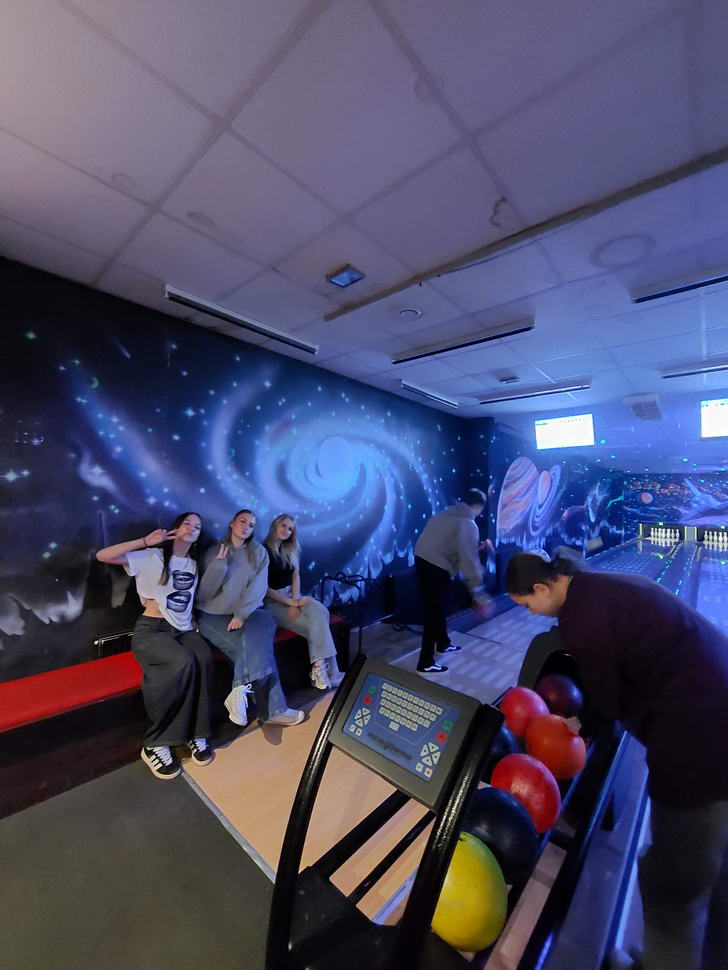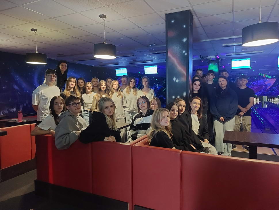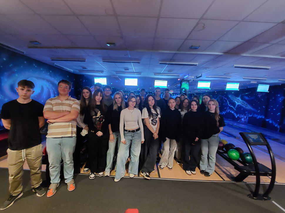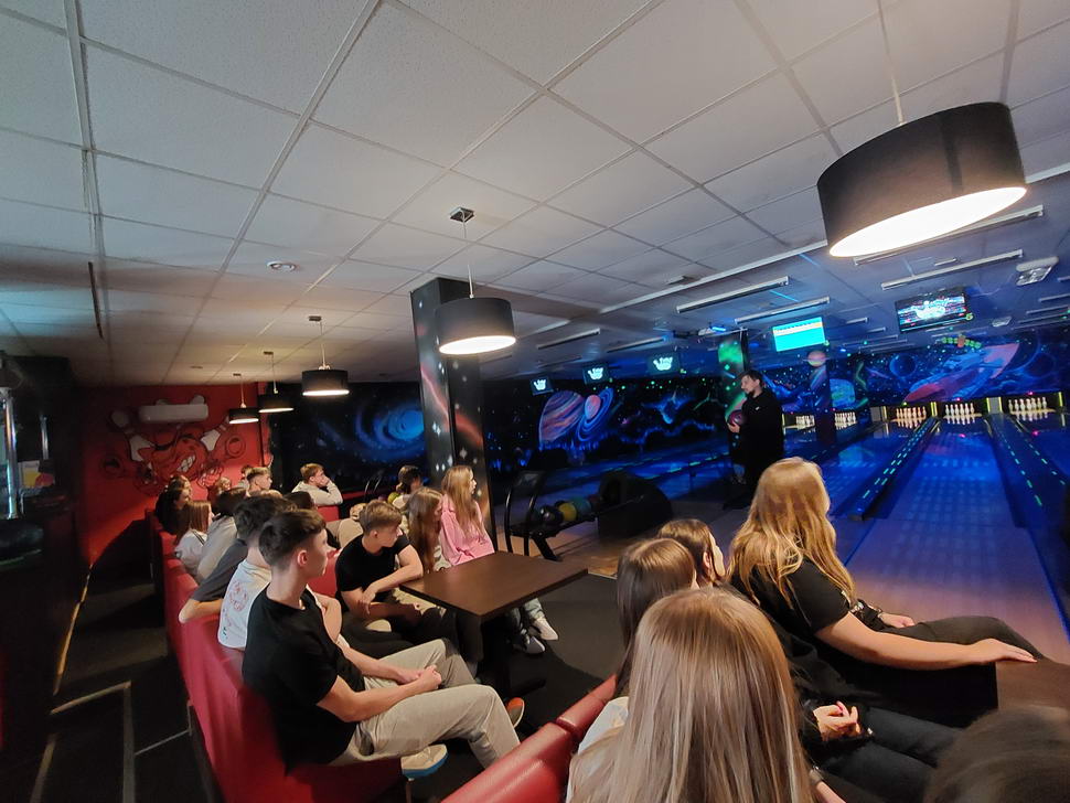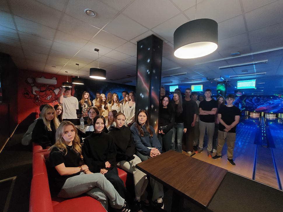 Po seansie grupa udała się na kręgle, gdzie rozpoczęła się prawdziwa rywalizacja w duchu dobrej zabawy. Wszyscy świetnie się bawili, dopingując swoich kolegów i koleżanki, a najlepszym graczom należą się szczególne gratulacje.
