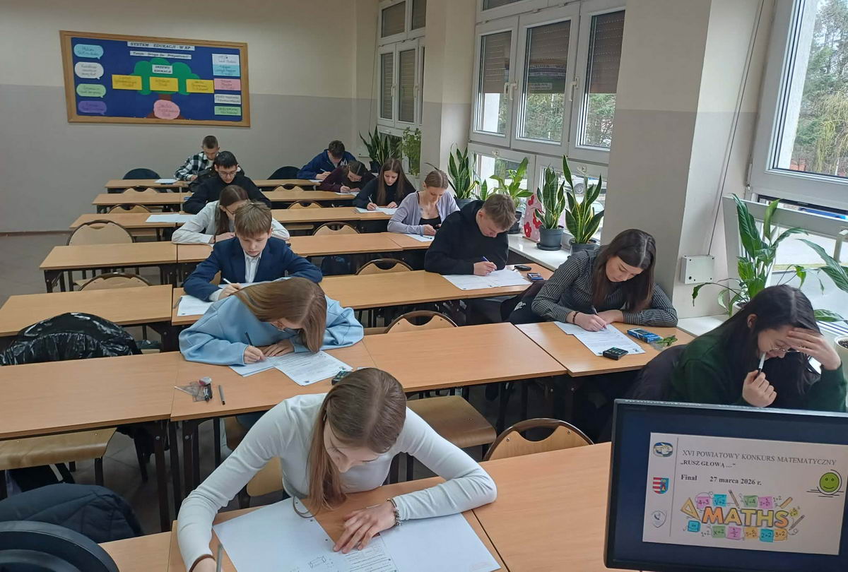 27 marca 2026 roku w gościnnych murach Naszej Szkoły odbył się finał XVI Powiatowego Konkursu Matematycznego „Rusz Głową…”. Organizatorem konkursu jest Zarząd Powiatowy Towarzystwa Przyjaciół Dzieci w Opocznie, Zespół Nauczycieli Matematyki w Zespole Szkół Powiatowych im. Stanisława Staszica w Opocznie oraz Powiat Opoczyński.
