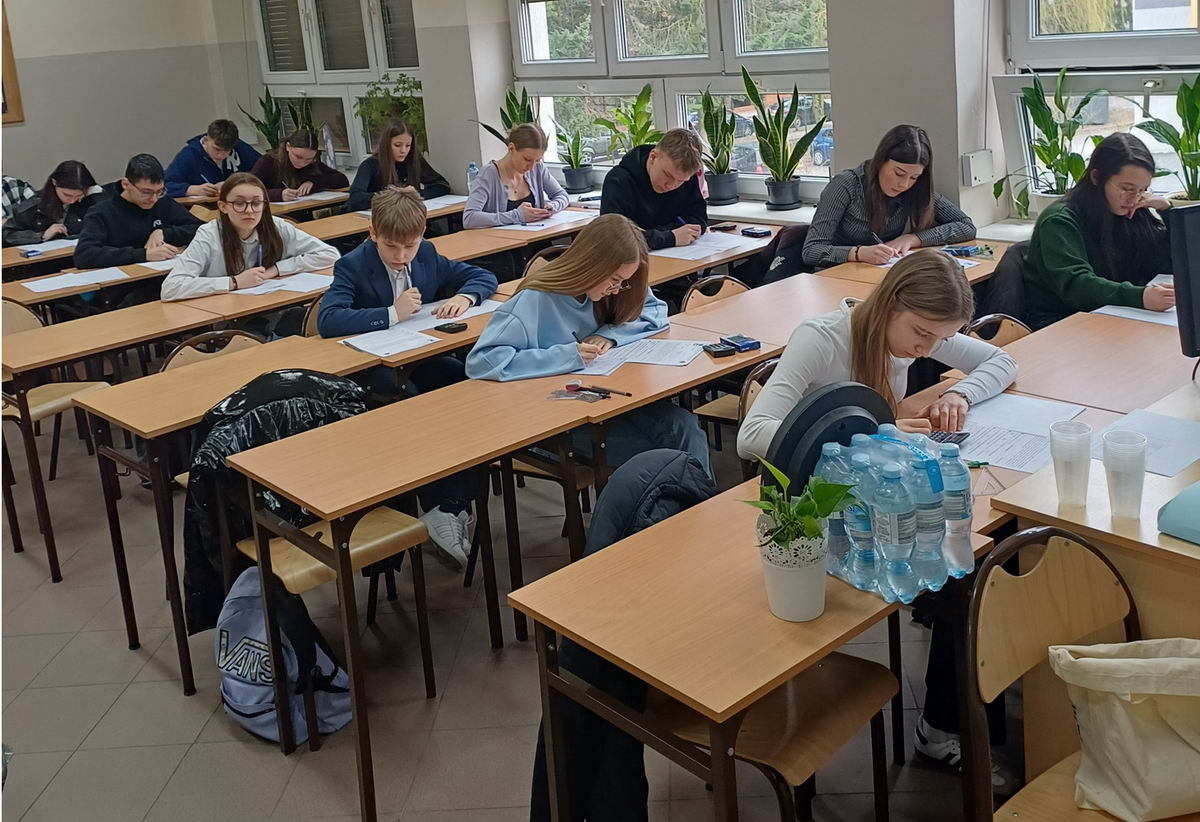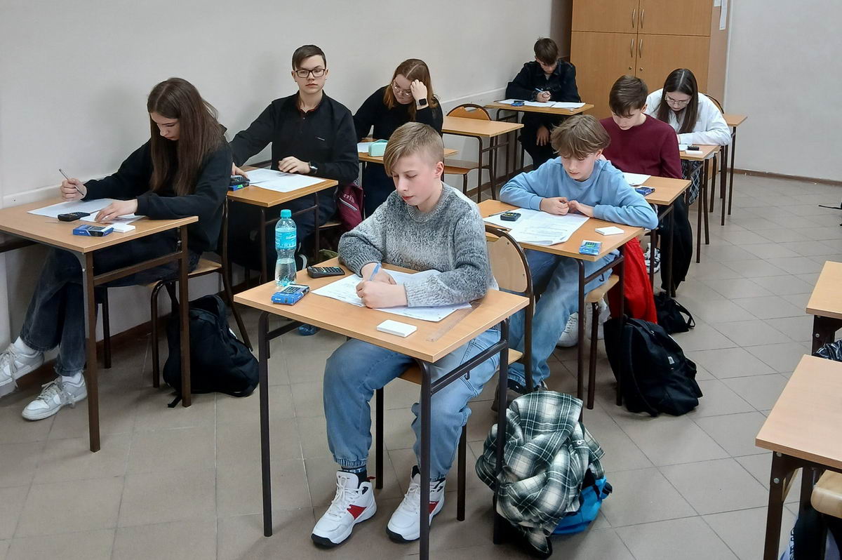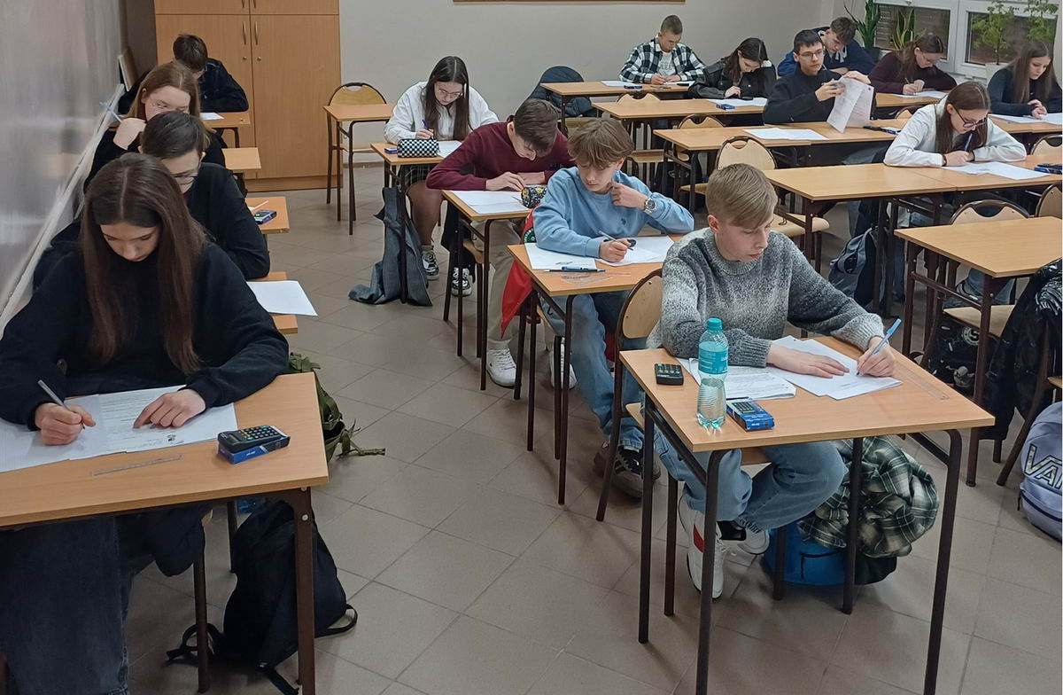 Finaliści przybyli 27 marca 2026 roku do naszej szkoły wraz ze swoimi opiekunami. Po oficjalnym powitaniu przez Pana Dyrektora Dariusza Kołodziejczyka uczniowie przystąpili do rozwiązywania zadań konkursowych. Czas na rozwiązanie przygotowanych przez Zespół Nauczycieli Matematyki zadań wynosił 60 minut.