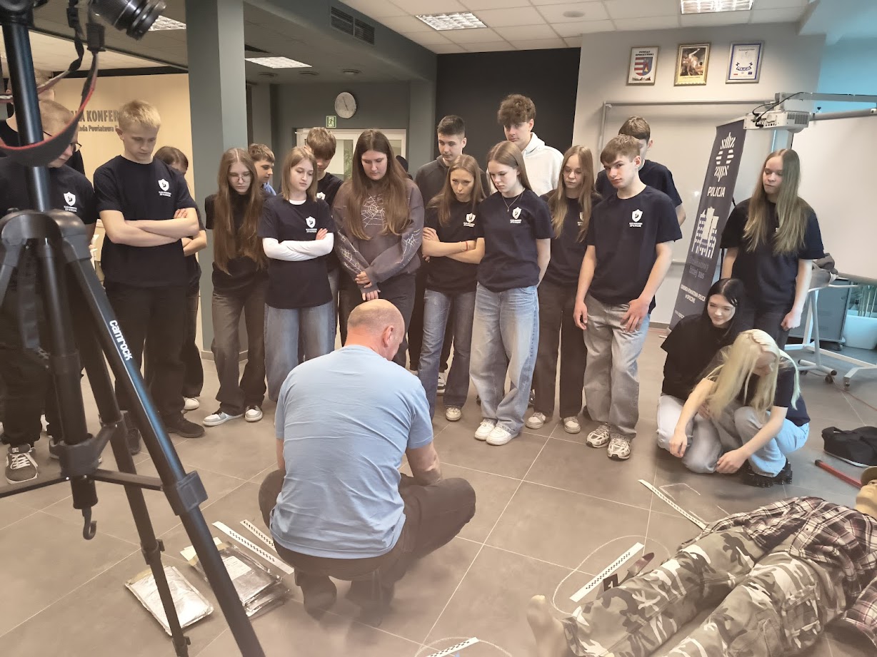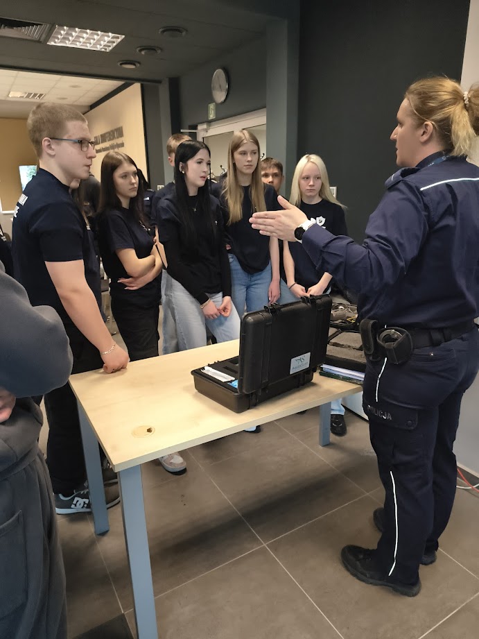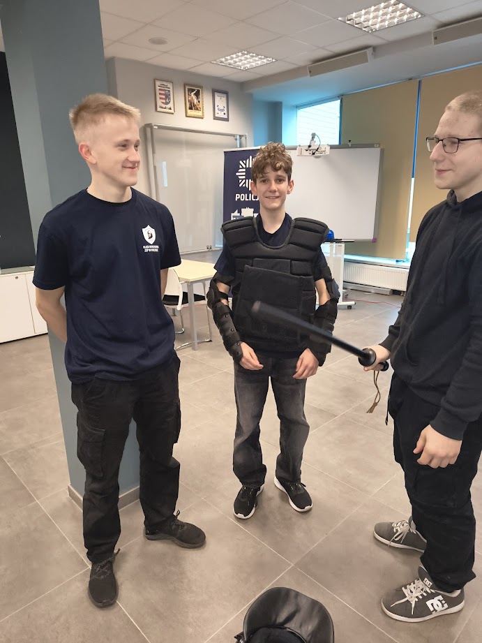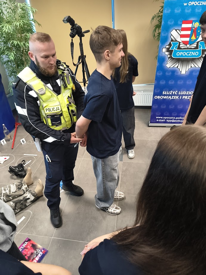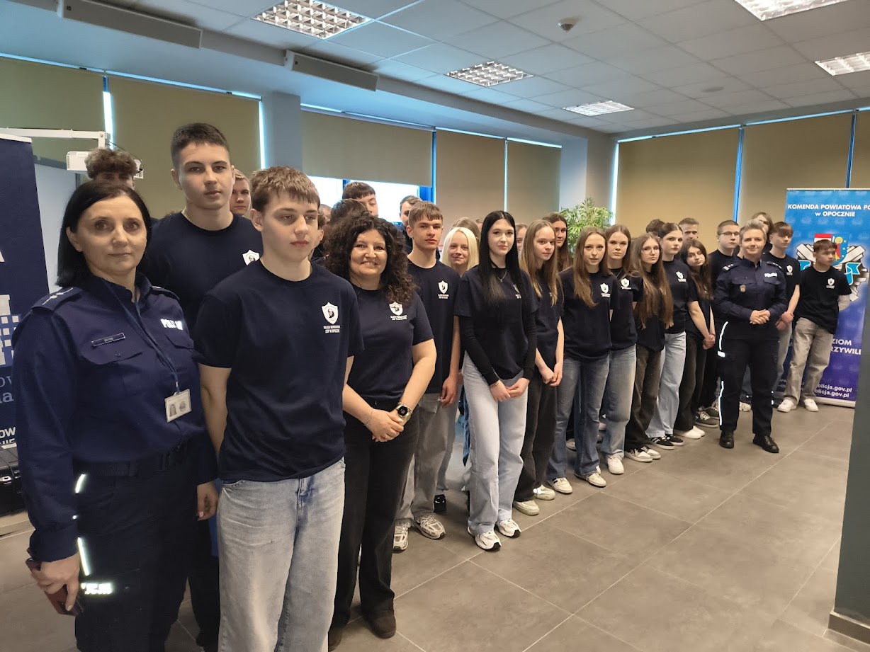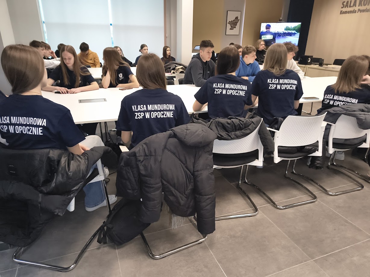 8 kwietnia 2026 roku uczniowie 1 klasy LO o profilu mundurowym wzięli udział w Dniu Otwartym Policji. Celem wydarzenia było przybliżenie specyfiki pracy funkcjonariuszy Policji oraz poszerzenie wiedzy na temat bezpieczeństwa i służby mundurowej. Młodzież została powitana przez Komendanta Powiatowej Policji w Opocznie mł. insp. Magdalenę Kucharską oraz funkcjonariuszy, którzy przedstawili plan wydarzeń. Na początku odbyła się krótka prelekcja na temat codziennych obowiązków policjantów, zasad rekrutacji do służby oraz wymagań stawianym kandydatom.
