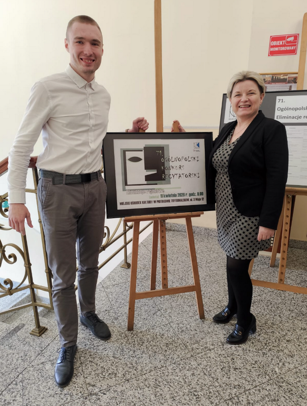 W sobotę 11 kwietnia 2026 roku Ksawery Kopaniewski, uczeń klasy 5 Technikum w zawodzie Technik Elektryk, reprezentował naszą szkołę na eliminacjach rejonowych 71 Ogólnopolskiego Konkursu Recytatorskiego w Piotrkowie Trybunalskim. Nasz uzdolniony recytator zakwalifikował się do etapu wojewódzkiego w kategorii recytacja młodzieży. Serdecznie gratulujemy Ksaweremu.